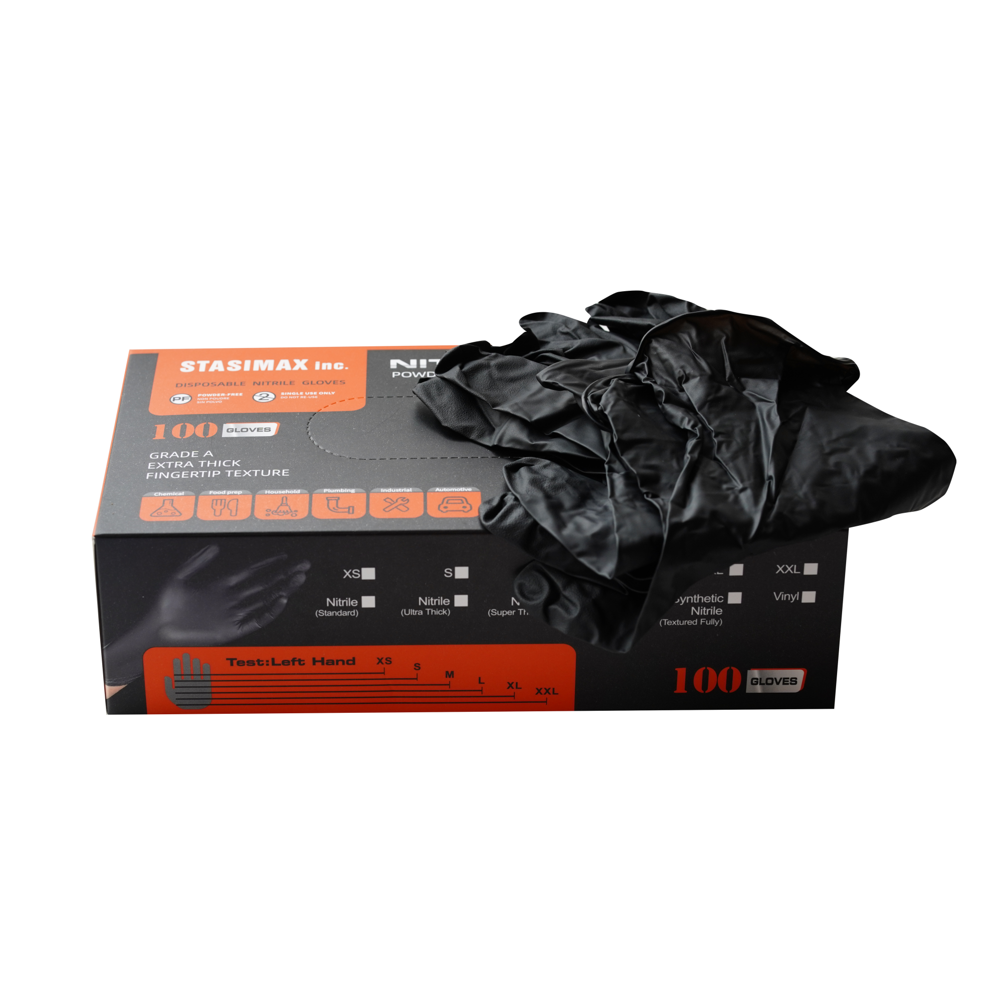 Our Black Nitrile Heavy Duty Gloves (7mil) are engineered for strength, comfort, and superior protection. Made from premium nitrile, these gloves are latex-free, chemical-resistant, and highly durable — perfect for demanding environments. The black color provides a professional look while helping to conceal dirt, grease, and stains, making them a preferred choice for mechanics, tattoo artists, food handlers, and industrial workers. With 7mil thickness, they offer excellent puncture resistance while maintaining flexibility and tactile sensitivity.